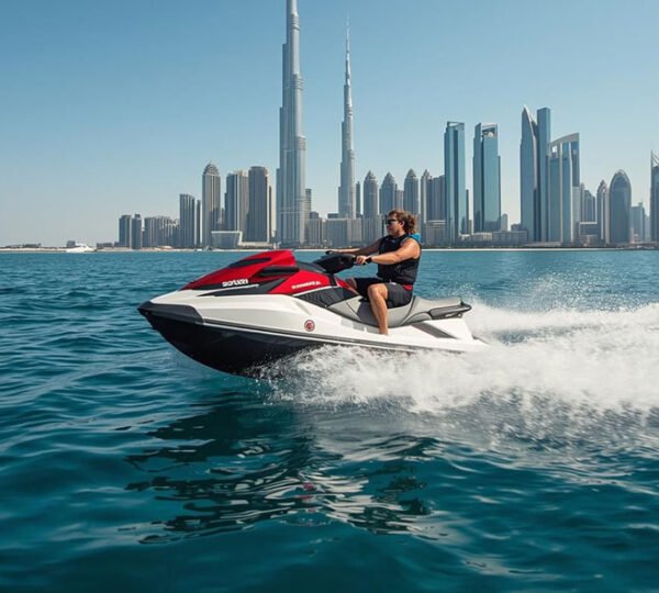 Experience the thrill of speed on the sparkling waters of Dubai with our 30-minute Jetski adventure. Enjoy stunning views of the iconic Burj Al Arab as you glide across the waves with a professional guide ensuring your safety and fun. Perfect for beginners and thrill seekers looking for a short yet exciting ride.